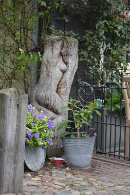 Elburg, houtsnijwerk in een voortuin.